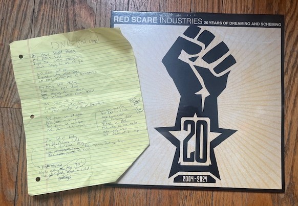 * Easter egg score! Here's a lyric sheet from when The Bollweevils were writing "DNR" for the RS20 compilation. You not only get to see how the sausage was made, you get to OWN it too! *
